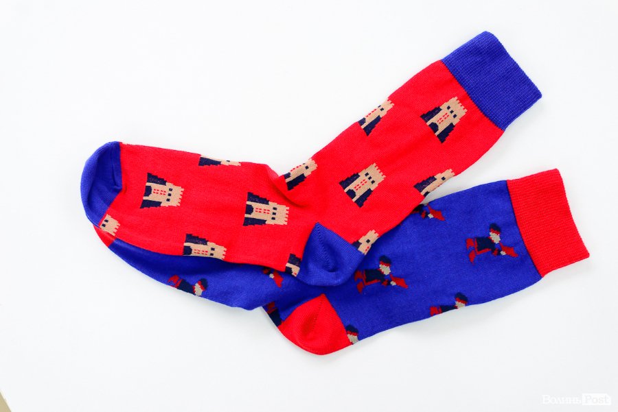 Особливий та багатофункціональний сувенір, який буде гріти у морозні дні та нагадувати про Луцьк. Шкарпетки унікальні, бо на одній зображений замок, на іншій – кликун. Ціна – 80 гривень.