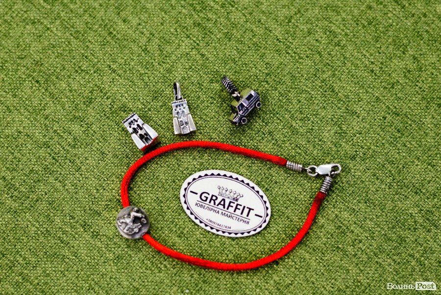 Чудовим подарунком стануть срібні намистини (500 гривень) та кулони (300 гривень) «В’їзна вежа Луцького замку», аби згадка про місто була біля самого серця. Також у наявності – браслет «Кликун» (500 гривень) із загадковим символом Луцька, міським вартовим. З новинок – намистина «Волинянка» (500 грн), що, безсумнівно, є дуже символічною, адже з 1979 по 1992 рік цей автомобіль випускався на Луцькому автомобільному заводі.