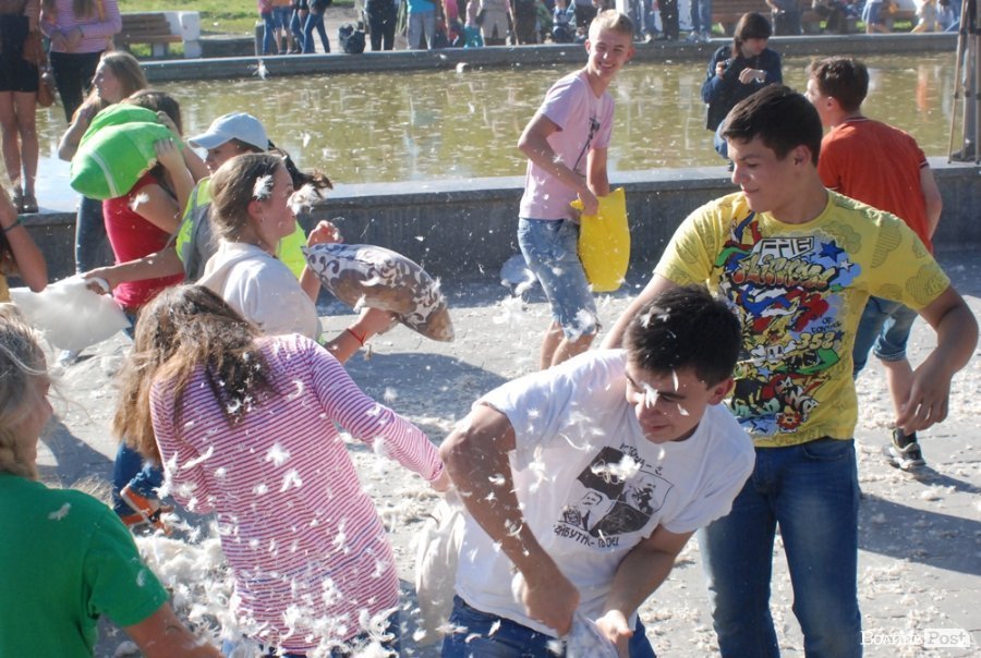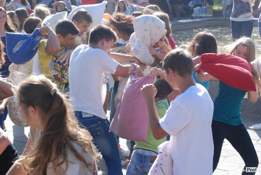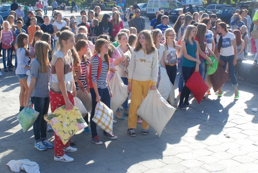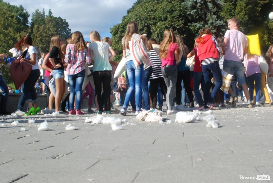 Приблизно 50 хлопців та дівчат влаштували в Луцьку бійку подушками.