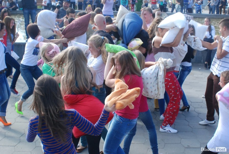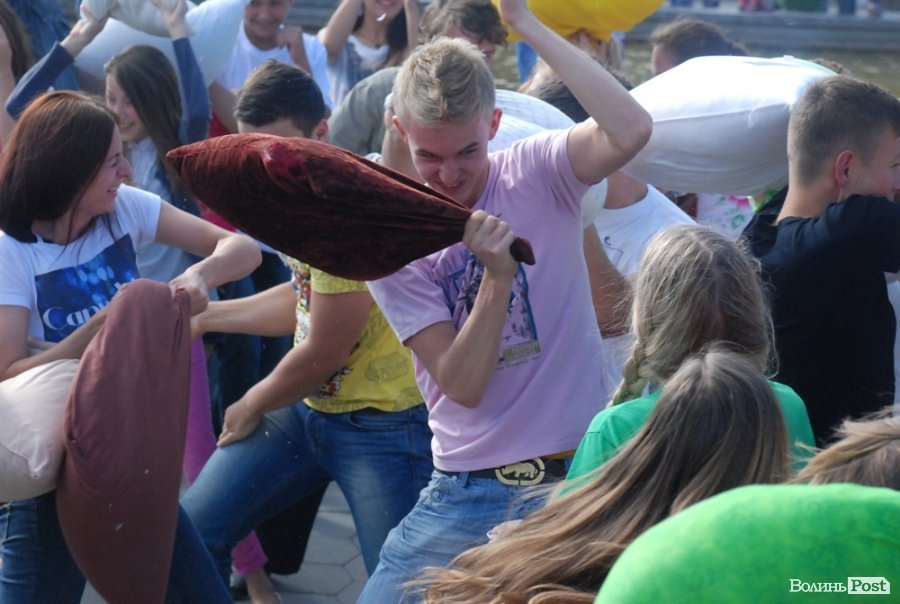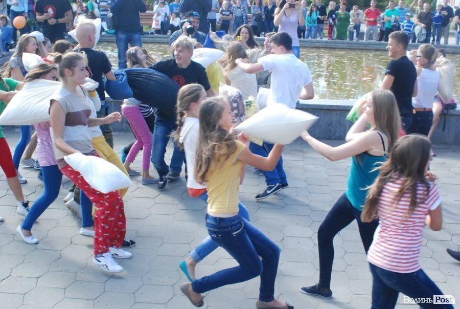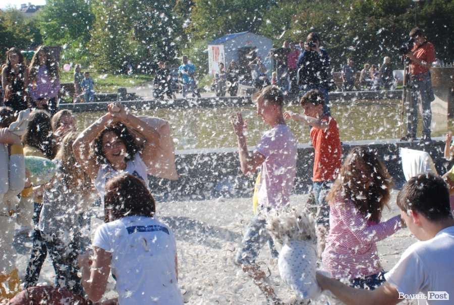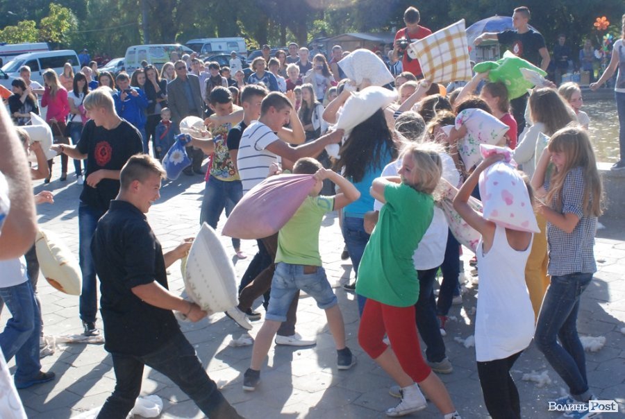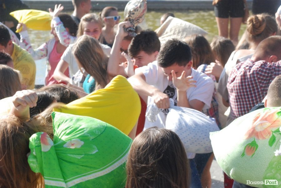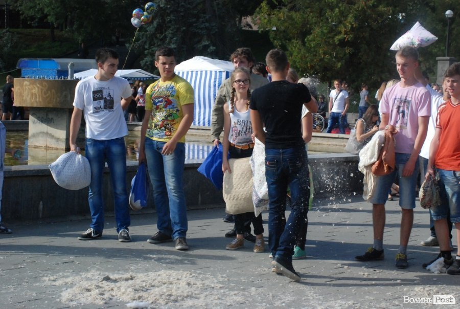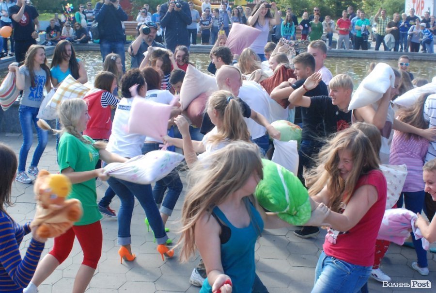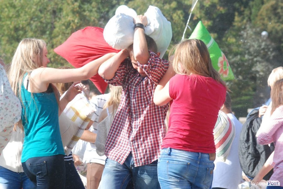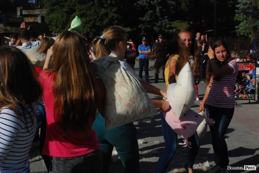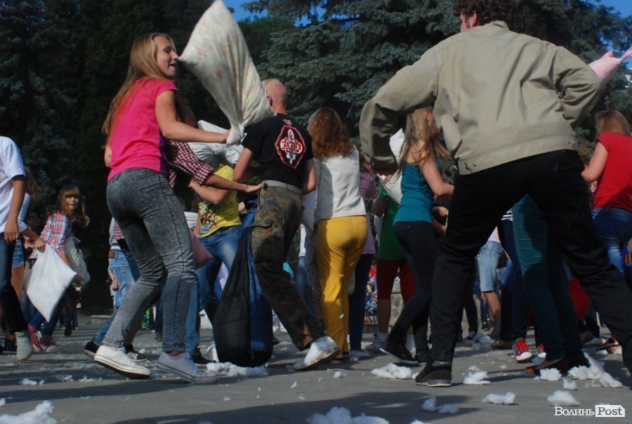 До слова, подушкова баталія за задумом організаторів мала відбутися на Театральній площі Луцька, але в міській раді заборонили захід на головному майдані обласного центру.