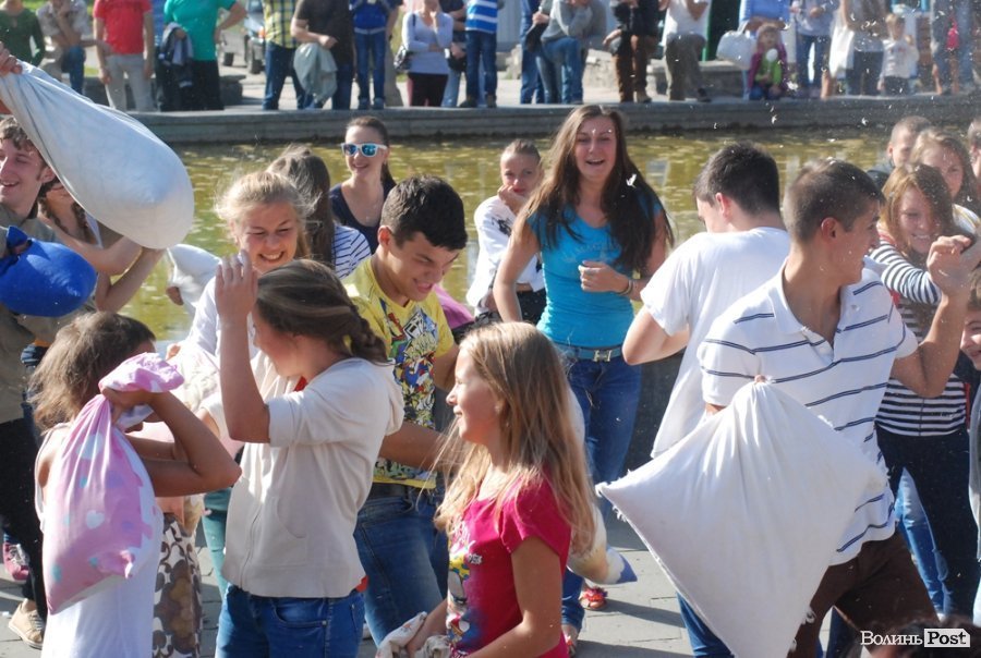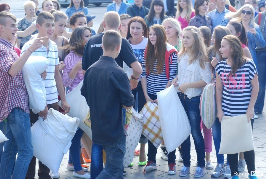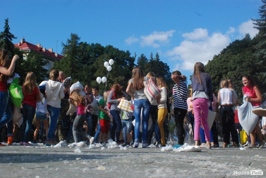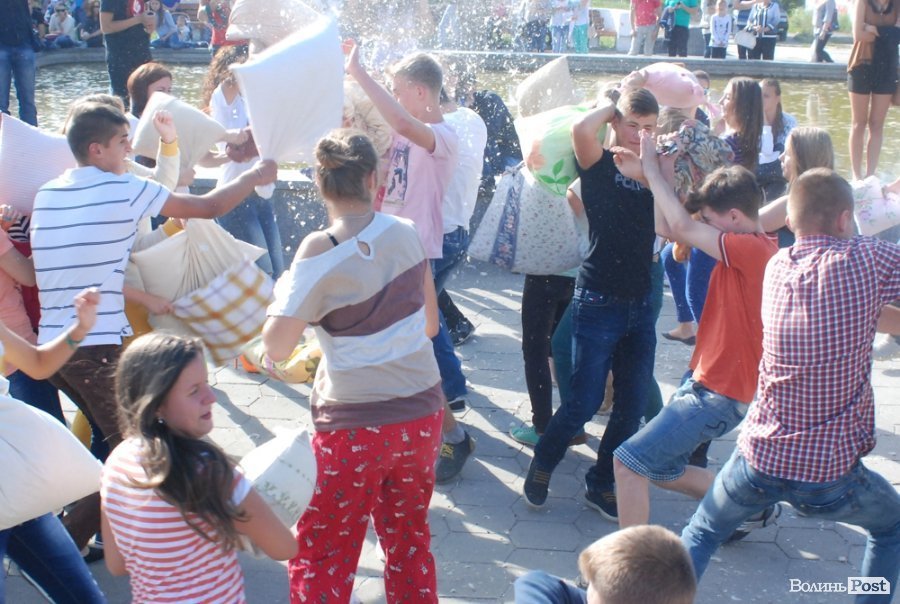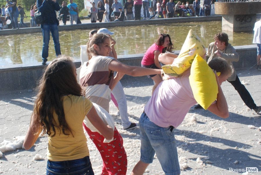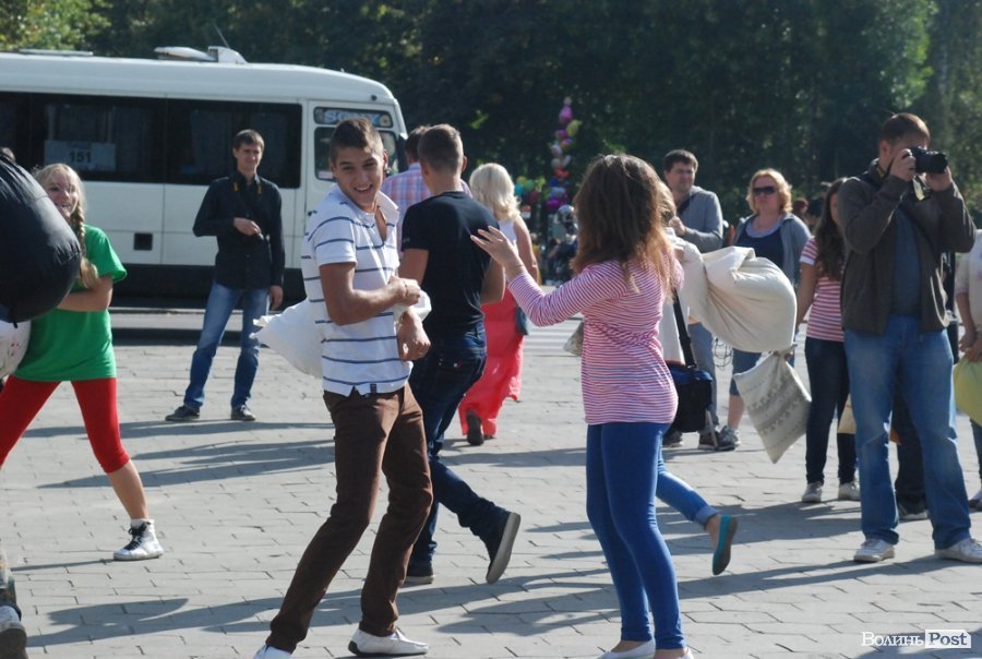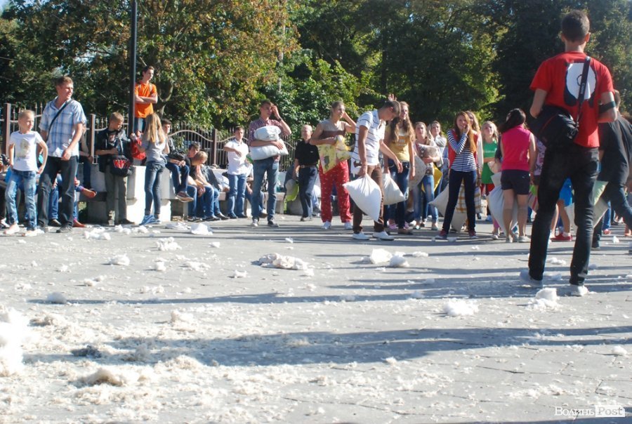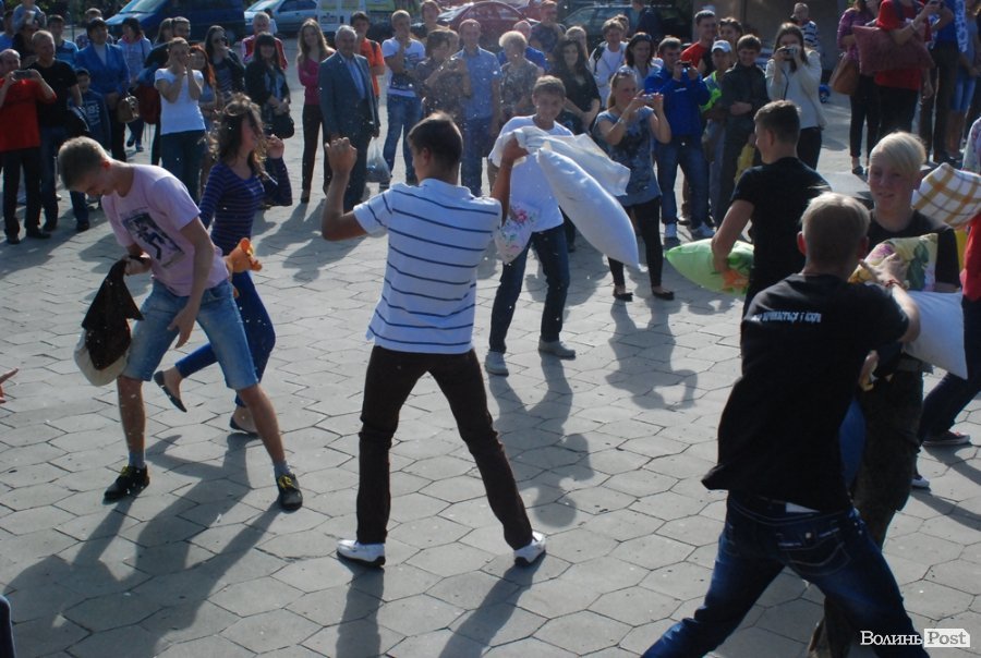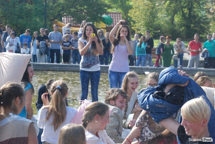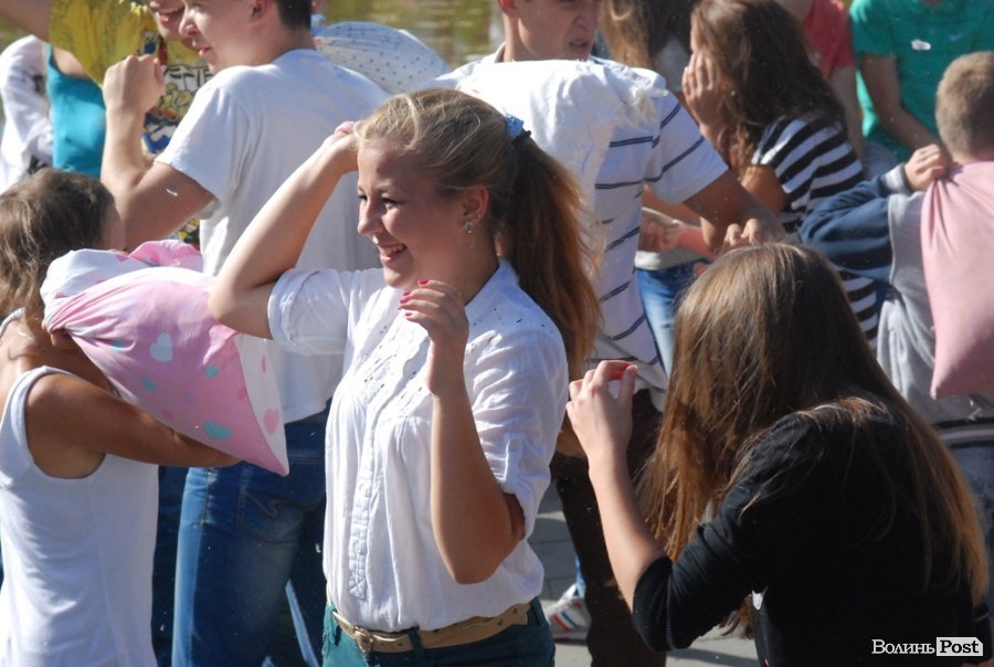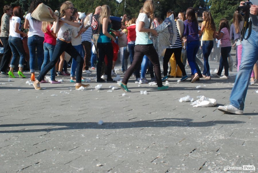 До слова, подушкова баталія за задумом організаторів мала відбутися на Театральній площі Луцька, але в міській раді заборонили захід на головному майдані обласного центру.