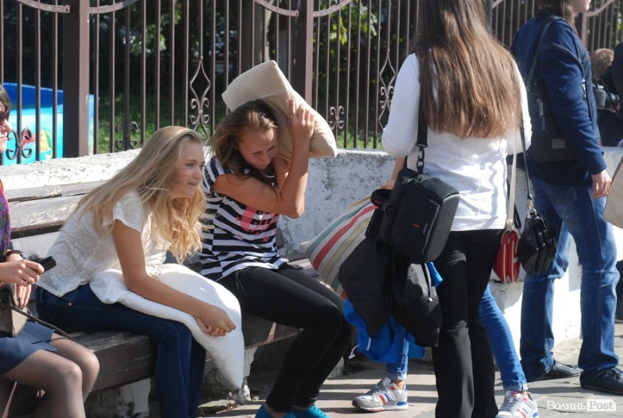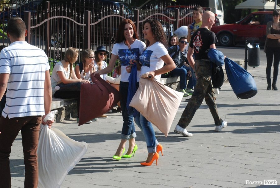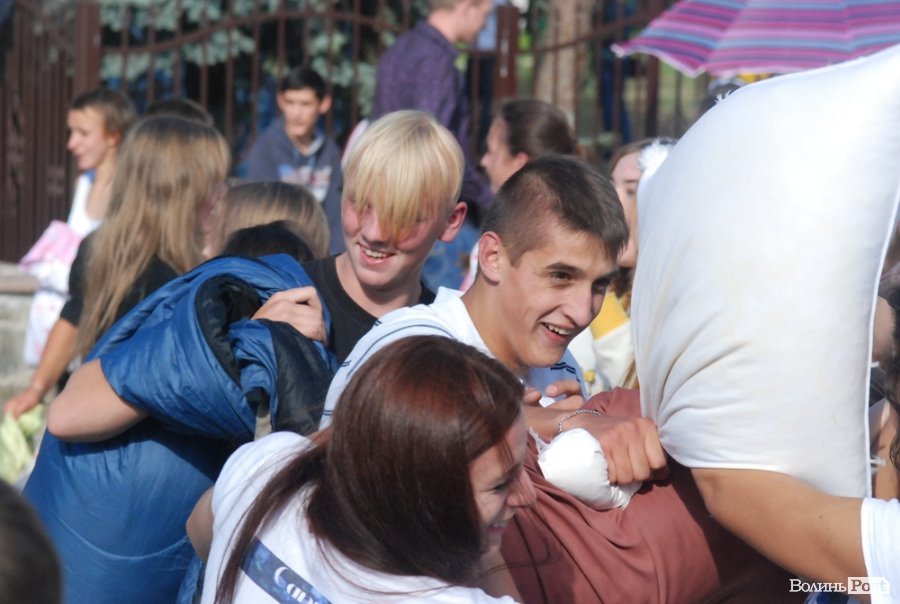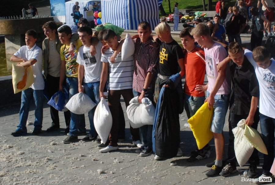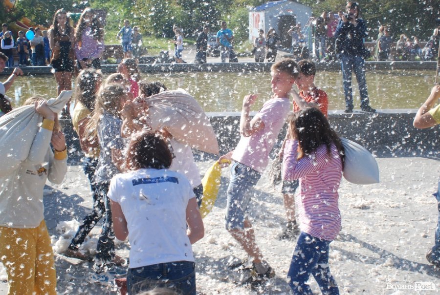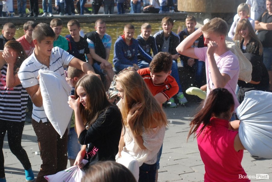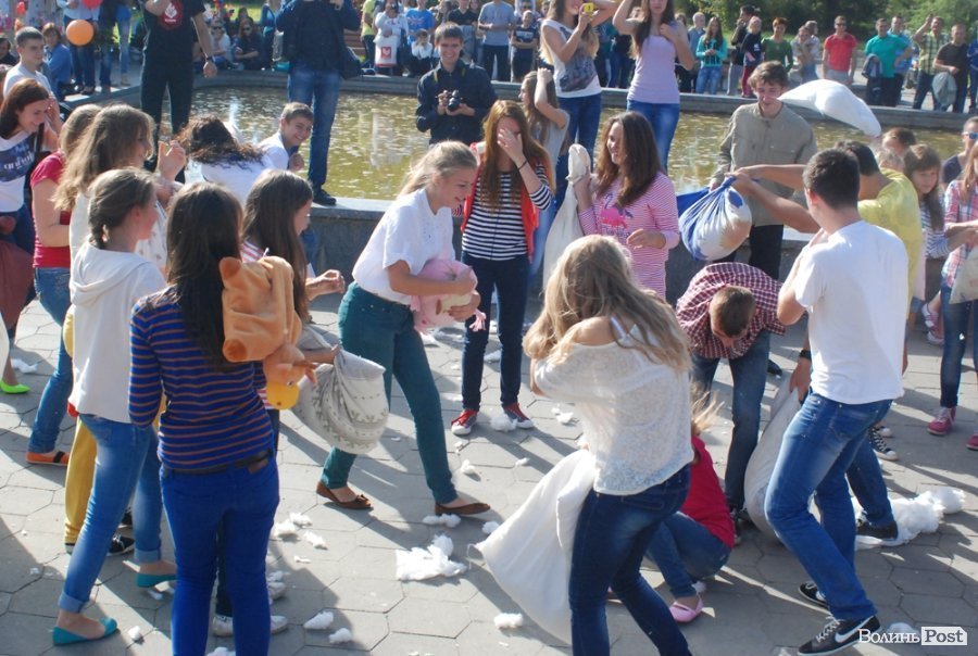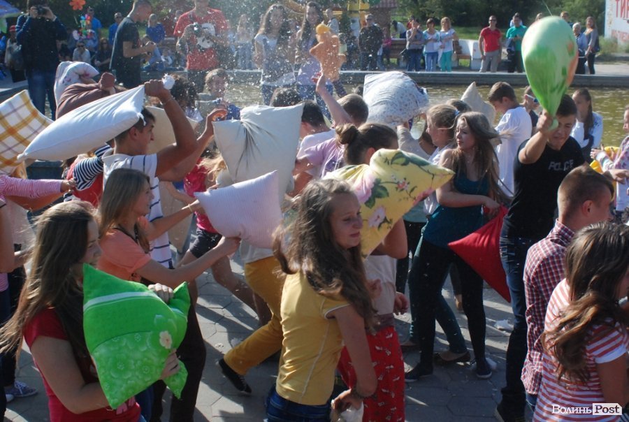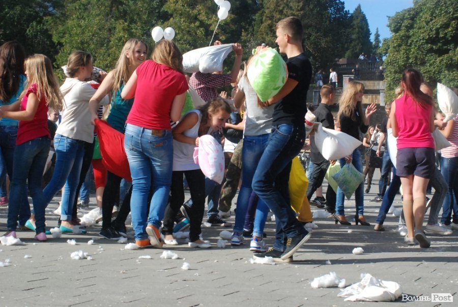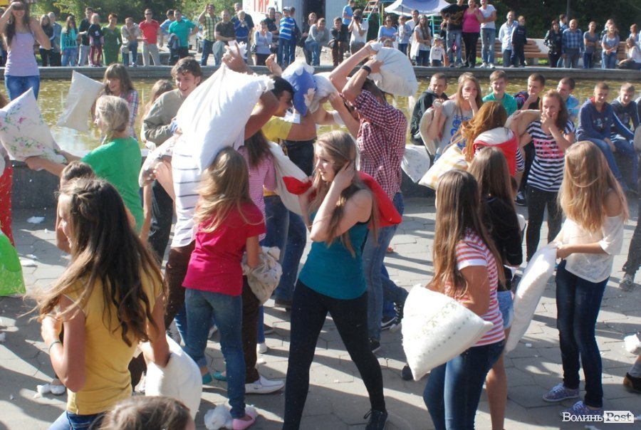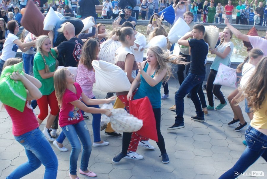 До слова, подушкова баталія за задумом організаторів мала відбутися на Театральній площі Луцька, але в міській раді заборонили захід на головному майдані обласного центру.