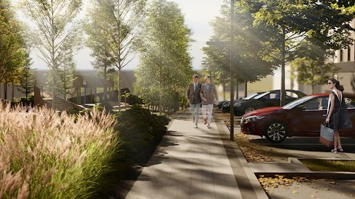 У ЖК “Амстердам” буде паблік-спейс з місцями для відпочинку, велосипедів та візків і навіть із душовою кабіною для домашніх тварин.