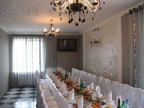 Будівля, як ідеться в повідомленні, має три поверхи і підвал. На першому поверсі з однієї сторони знаходиться магазин, а з іншої - ресторан. На другому поверсі - бухгалтерія, три затишні кімнати, великий просторий банкетний зал, туалет.