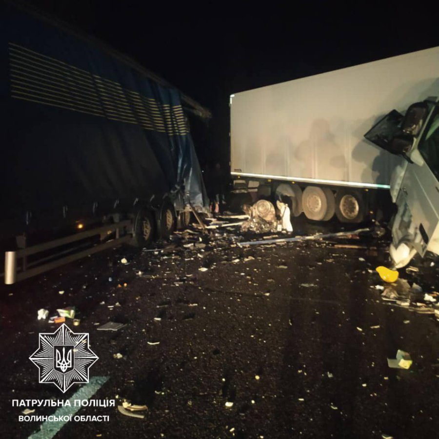 На волинській трасі фура вночі влетіла в припаркований тягач. ФОТО