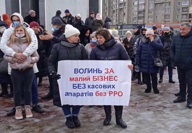 Під стінами Волинської облдержадміністрації підприємці влаштували акцію протесту. Вони вимагають внести зміни в закон про обов'язкове використання касових апаратів.