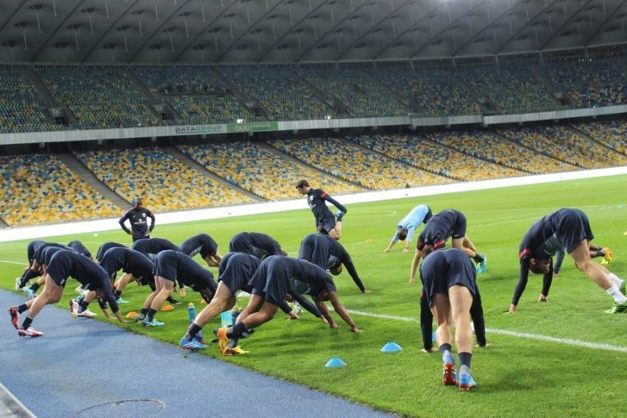 У цей час футболісти не працювали з м'ячем, а лише розминалися. Воротарі займалися окремо.