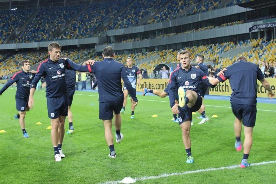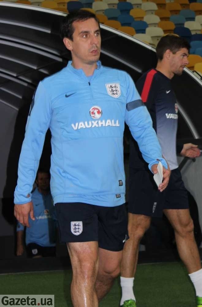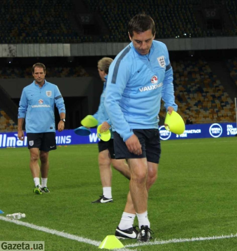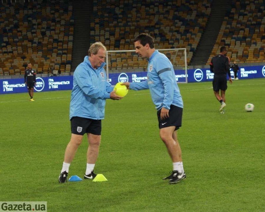 Колишній капітан "Манчестер Юнайтед" і теперішній помічник Ходжсона у збірній Гаррі Невілл розставляв фішки на полі перед виходом футболістів. Пізніше саме він дав команду гравцям розпочати тренування. Сам Ходжсон вийшов з роздягальні трішки пізніше.