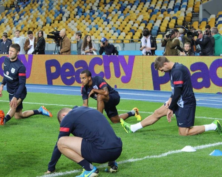 Відзначимо, що під час матчу українські глядачі та вболівальники побачать англійську рекламу. Команда привезла з собою навіть рекламні щити.