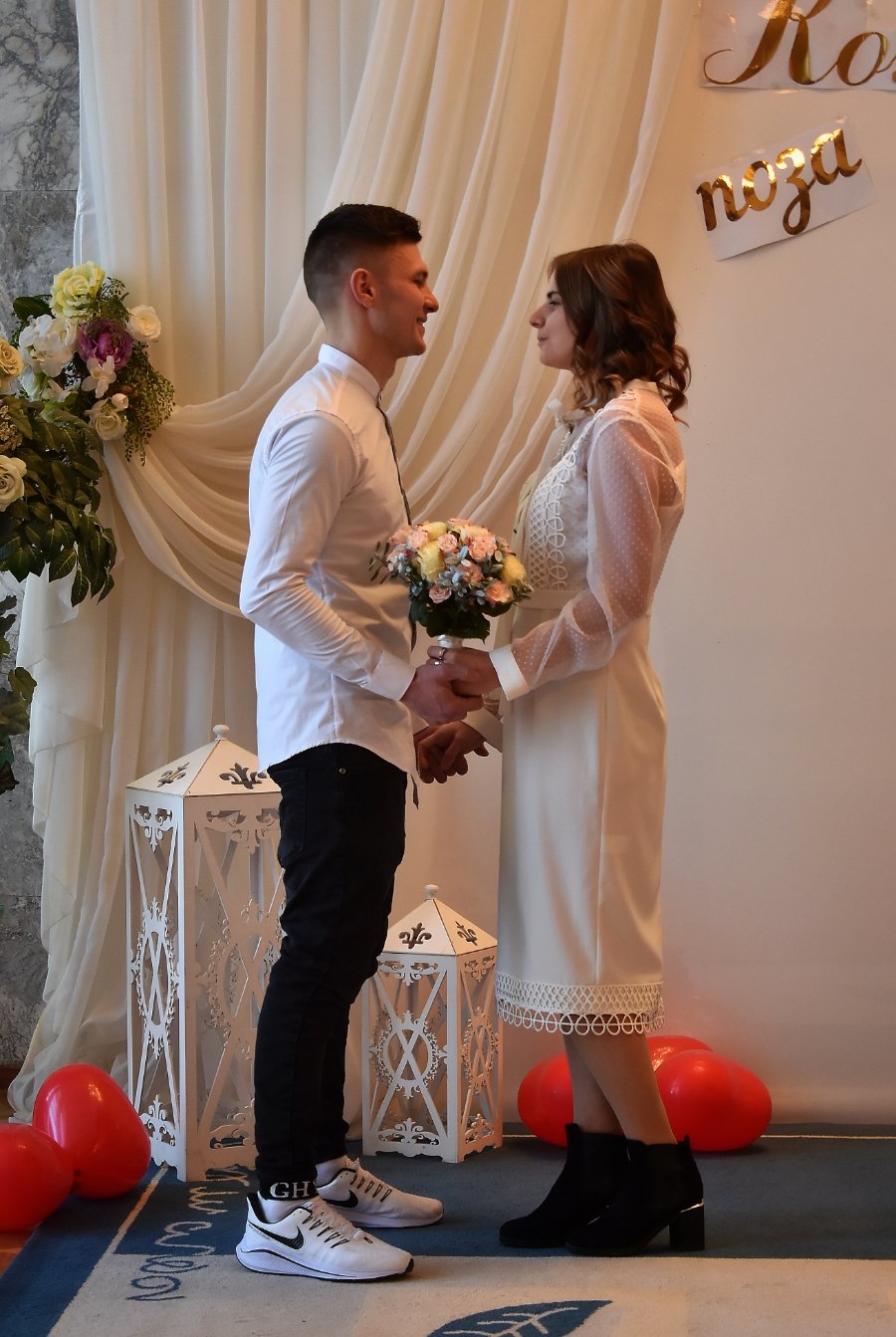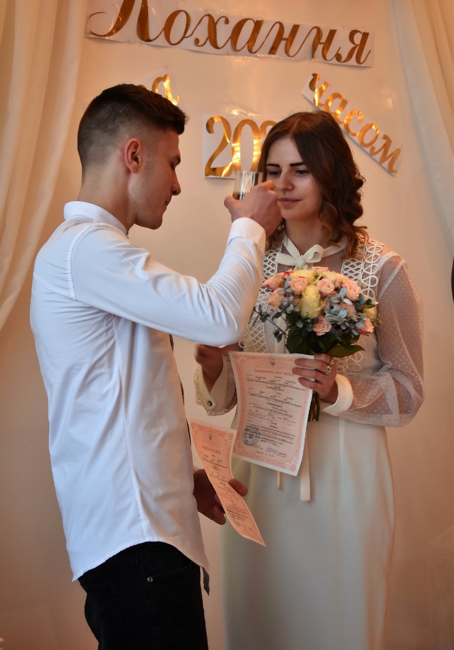 «День святого Валентина - хороша дата, аби створити нову сім‘ю. Взагалі, ми не дуже сподобалися один одному, коли познайомилися. Але в один момент усе перевернулося, і вже сьогодні стоїмо тут, у РАЦСі із обручками на руках. Сьогодні плануємо святкувати у колі найрідніших людей, а саме весілля зробимо трішки пізніше»,- діляться своєю історією Артур та Дарина.