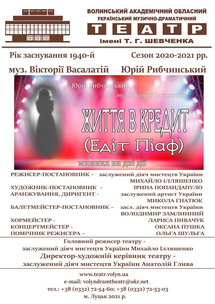 Волинський академічний театр імені Т.Г. Шевченка покаже мюзикл на дві дії «Життя в кредит» (Едіт Піаф).