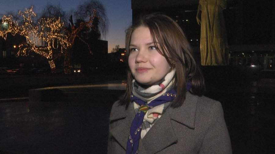 "Прийшла на цю акцію, тому що поважаю тих героїв, які поклали свою душу, своє тіло за Україну і хочу теж їх вшанувати", – каже учасниця акції, школярка Тетяна Патрай.