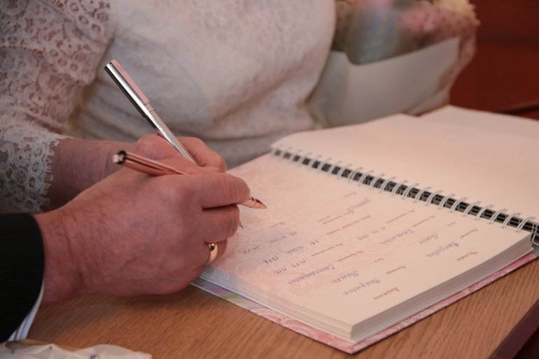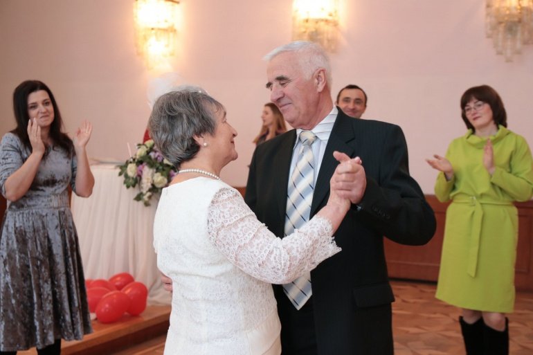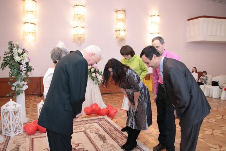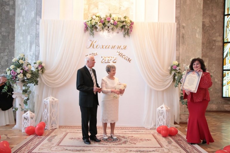 На святкування «золотого весілля» до відділу державної реєстрації актів цивільного стану завітала уся родина ювілярів, а вона у них немаленька – п’ятеро внучок посміхаються щодня дідусеві та бабусі. Родинне свято було наповнене освідченням в коханні, гарячими поцілунками.