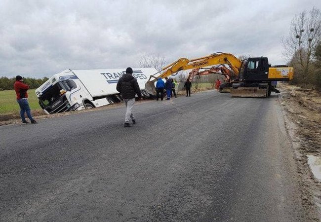 22-го лютого на трасі P-15 між Володимиром та Ковелем, поблизу Турійська, вантажівка злетіла в кювет.