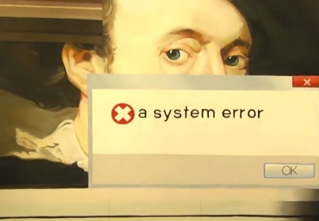 Спливаючі вікна, що інформують про помилку, завантаження сторінки та спотворення зображення через проблеми з інтернетом. Юний художник Олександр Корецький презентував у Луцьку експозицію «Без назви».
