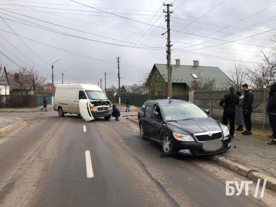 Зіткнулися бус "Фольксваген" та автомобіль "Шкода". Бус виїжджав з другорядної дороги та не надав переваги в русі водію "Шкоди". Останього від удару відкинуло на тротуар.