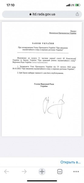 Нагадаємо, що 23 лютого в Україні прийняли рішення ввести режим надзвичайного стану.
