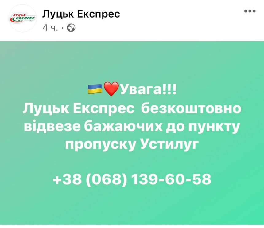 Зокрема, компанія «Луцьк-Експрес», що здійснює пасажирські перевезення, безкоштовно підвозить усіх охочих до пункту пропуску «Устилуг».