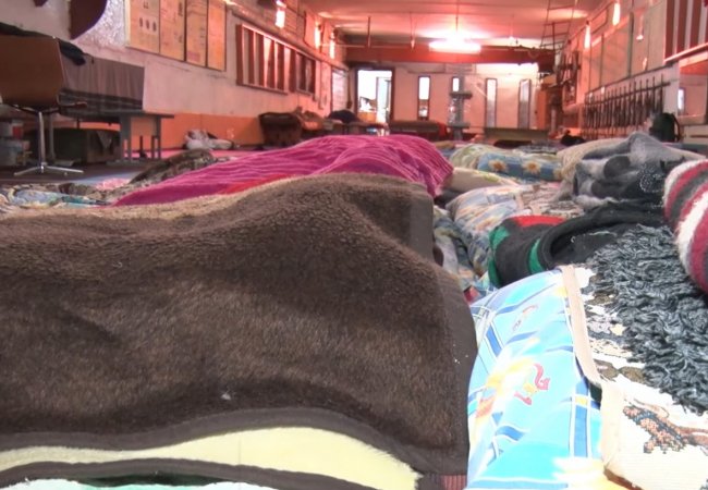 У цьому укритті тепло, приміщення опалюється. Є місце, щоб поїсти, і продукти тривалого зберігання. Люди сюди приходять на ніч, а вдень розходяться по домівках.