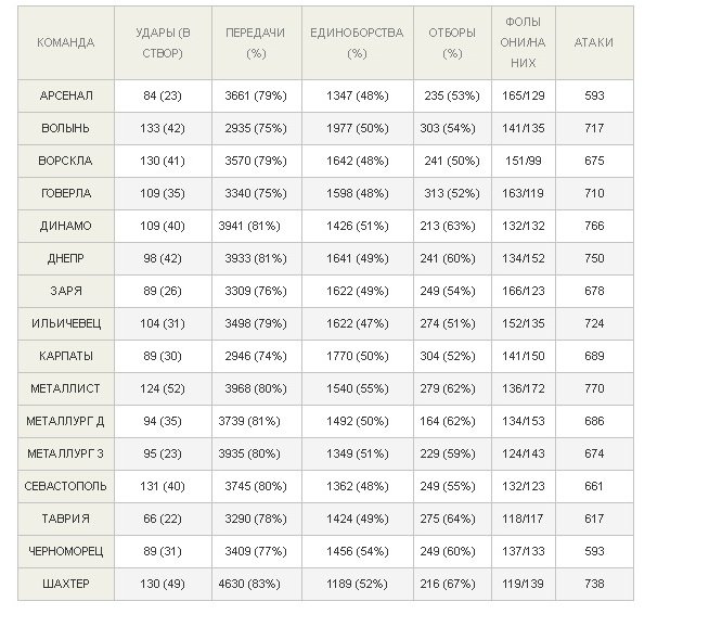 А от за кількістю пасів "червоно-білі" посідають останнє місце з 16 команд Прем'єр-ліги - 2935, зате лідирує "Волинь" за кількістю єдиноборств - 1977 спроб, з яких половина вдалі.