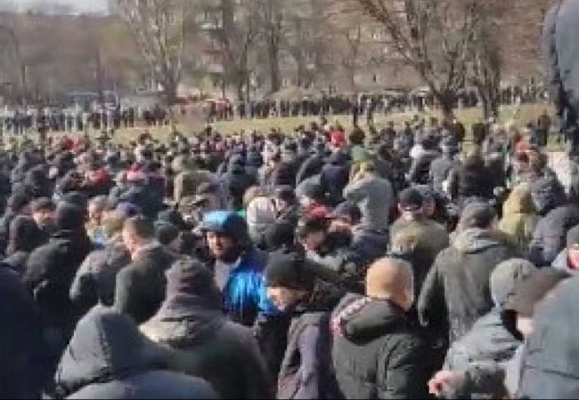 В мережі оприлюднили відео, де видно кількість бажаючих у Запоріжжі вступити в ряди тероборони. Чоловіки хочуть отримати зброю та захищати своє місто.