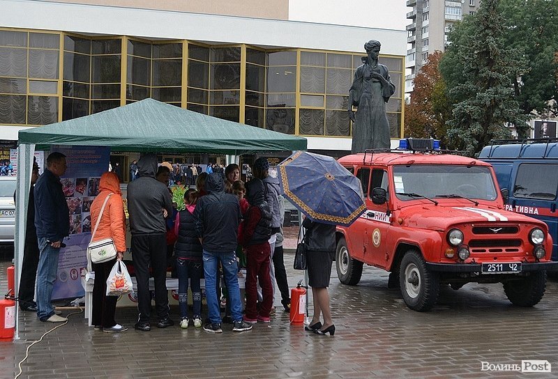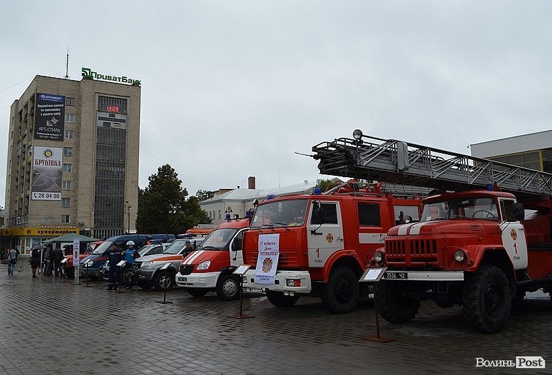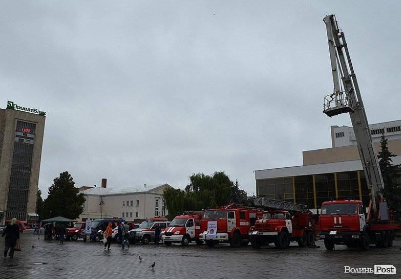 У центрі Луцька 13 вересня, попри дощову погоду, діє виставка рятувальної техніки.