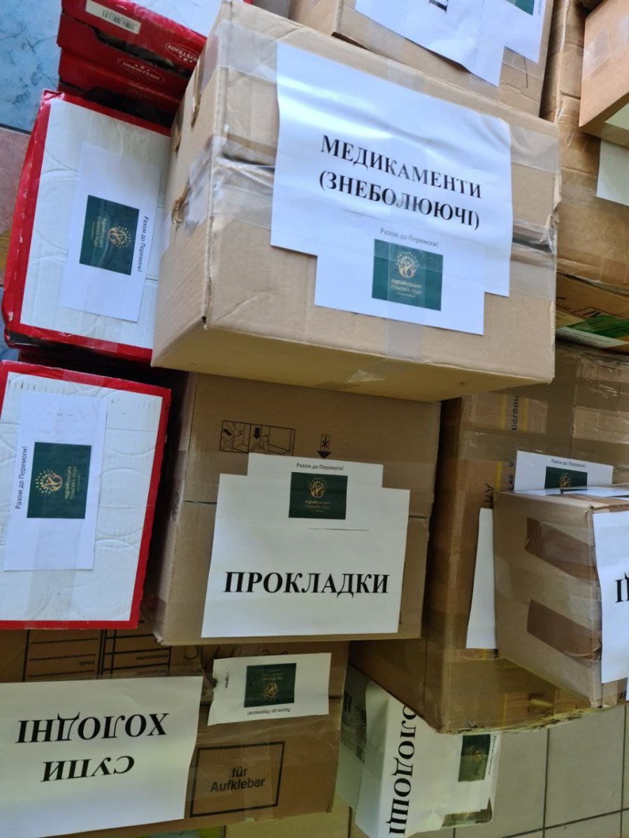За два тижні у громаду надійшло кілька гуманітарних вантажів від партнерів із Польщі та Німеччини. Іноземні благодійники зібрали для потреб українців продукти харчування довготривалого зберігання, медичні засоби, індивідуальні аптечки, перев’язувальні матеріали, ліхтарики, балаклави, темобілизну, спальники, карімати, засоби гігієни для дітей та дорослих, постільну білизну, ковдри, матраци, дитячі суміші для немовлят, дитячі каші та пюре, іграшки, одяг.