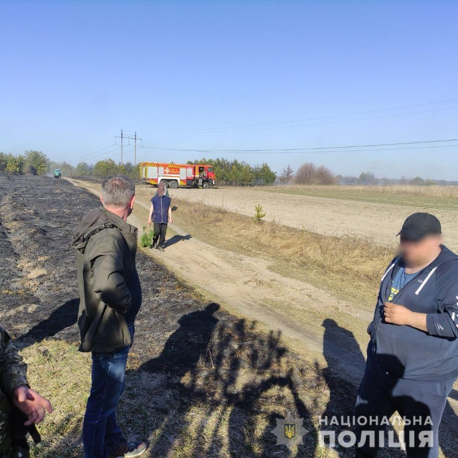 Поліцейські встановили, що спалювання сухої трави сталось при виконанні сільськогосподарських робіт, внаслідок чого відбулось загоряння сухостою породи сосна та трави на паях місцевих жителів. Загалом, пожежа пошкодила близько 10 га землі.
