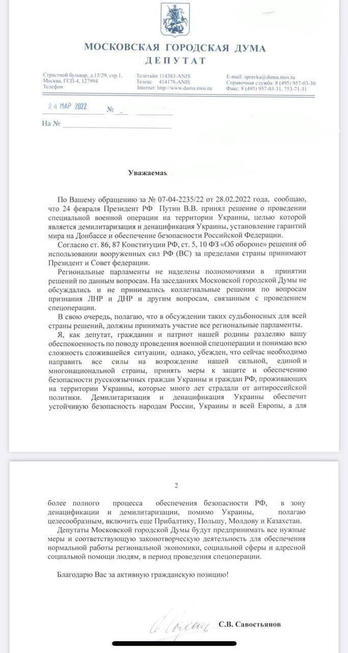 Російські ЗМІ передають, депутат московської думи Сергій Савостьянов склав цей документ та заявив, що така "операція" забезпечить стійку безпеку усій Європі.