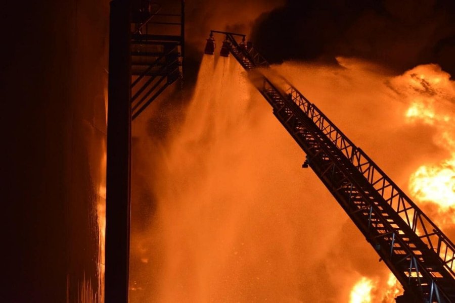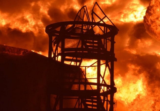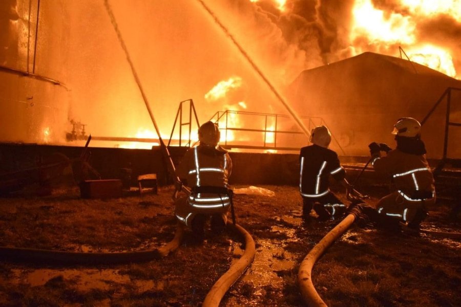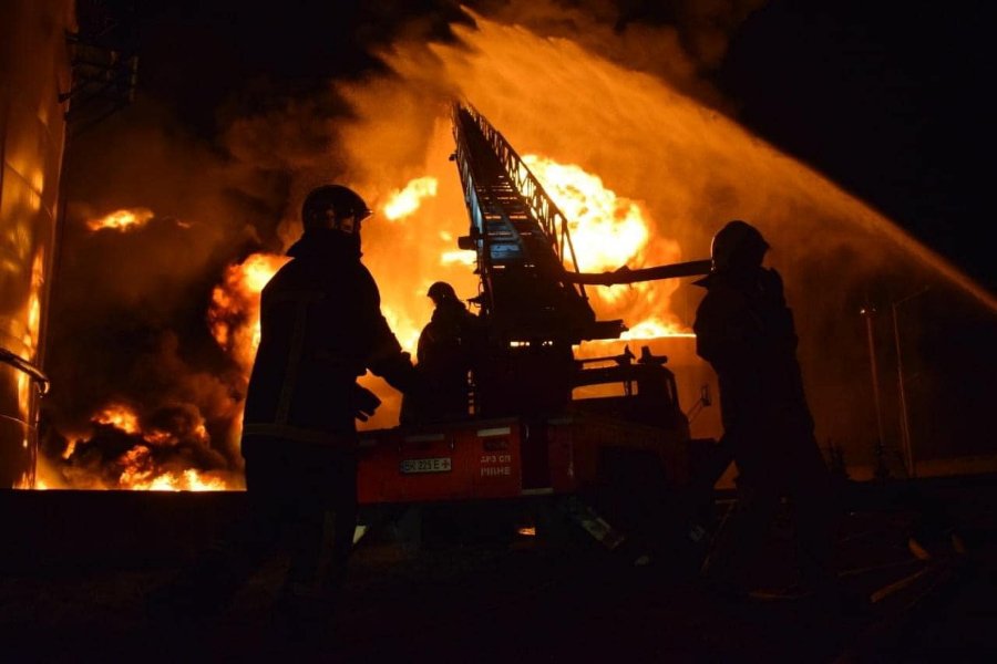 На одній із нафтобаз на Рівненщині триває ліквідація пожежі, що сталася внаслідок ворожого ракетного удару.