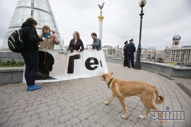 Учасники акції мають намір протримати банер до 18:00, після чого почнеться акція "Вечір пам'яті Георгія Гонгадзе".