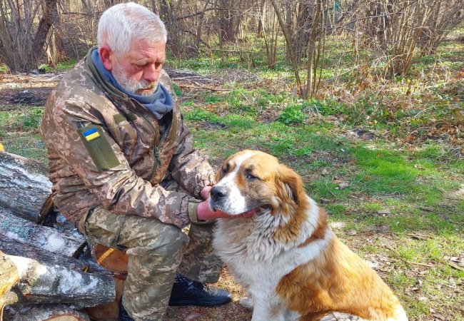 Поруч з волинянином Ігорем Гобчанським готова дати відсіч кремлівським окупантам відважна його чотирилапа улюблениця Белла.