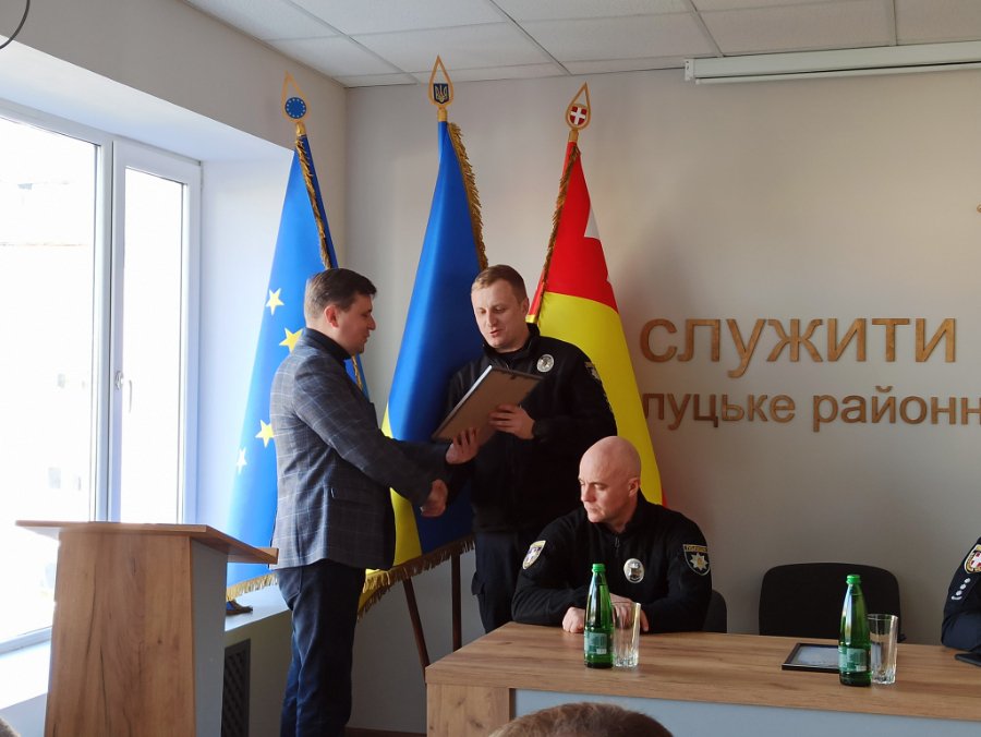 В офіційному представленні нового керівника поліції району взяли участь голова Луцької районної ради Олександр Омельчук та голова Луцької районної військової адміністрації Володимир Кец.