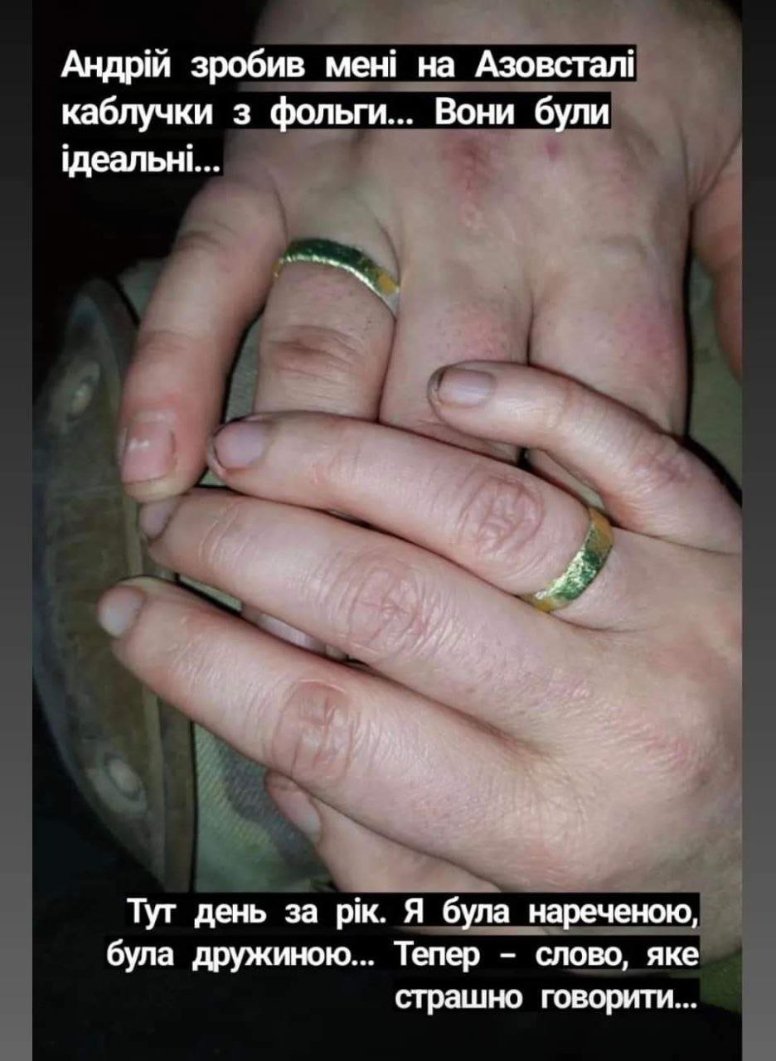«Андрій зробив нам каблучки з фольги»: захисниця з Маріуполя на «Азовсталі» стала нареченою, дружиною та… вдовою