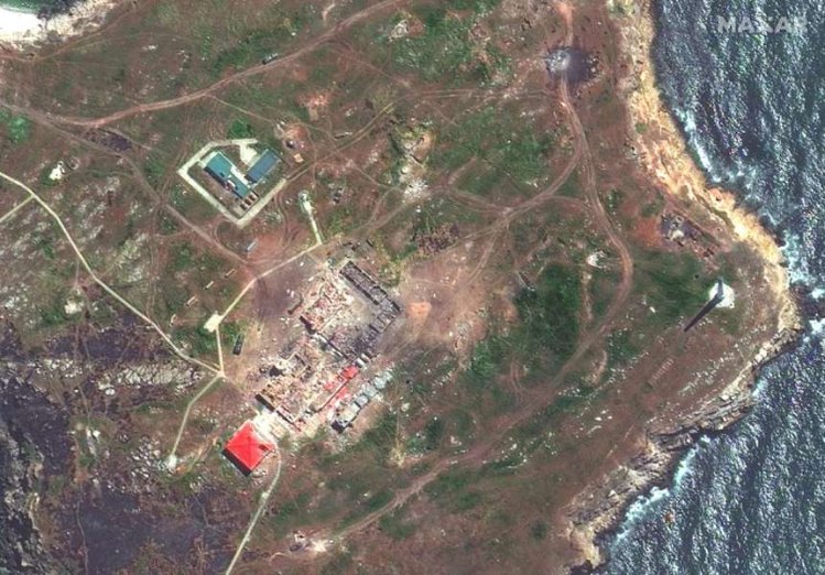 Супутниковий знімок від Maxar Technology показав, як українські військові атакують ракетою російський корабель біля острова Зміїний.