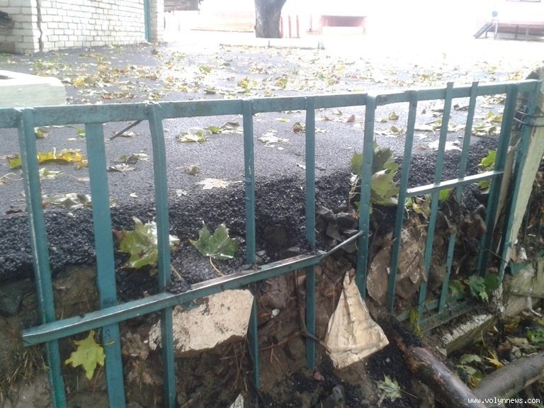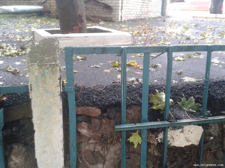З двору лікарні «картина» красива, втім з іншого боку паркану, що межує з парком 900-річчя міста Луцька, зауважуємо, що асфальтоване покриття поклали просто на купу сміття.