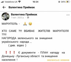 «Війна 2022 року була спланованна нинішнім режимом зеленського . План - напад на Донецьку, Луганську області , руйнування інфраструктури та знищення народу! Ці факти достовірні, є документи: прикази з підписами, план дій… Ця війна - договірна . Щоб відвести підозру від себе , і стати героєм. Зеленський узгодив з путіним першим напасти на Україну . Так розпочали повномаштабну кровопролитну війну в Україні. Так знищують український народ та бомблять, розвалюють все, що було побудованно не одним поколінням . Україну перетворюють на руїни ...» – йдеться в одному з дописів, цитату з якого подаємо без редагування.