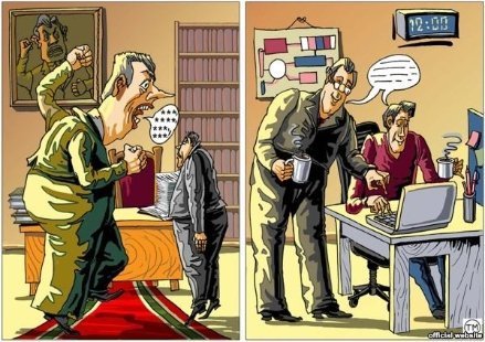 Абсолютна ієрархія. В українських реаліях панує абсолютна ієрархія. Ледве не будь-який начальник вважає себе царем, а свого підлеглого рабом, допоки не потрапляє у кабінет вищого начальника, де вже сам автоматично перетворюється на раба. У багатьох європейських країнах (особливо скандинавських) начальник - це лише старший партнер, а не цар та Бог, до нього можуть звертатись навіть по імені - без почестей, як у нас. Якщо в Україні підлеглий - безправний, то в ЄС трудові відносини жорстко регламентовані відповідним законодавством.