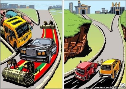 Поділ на "VIP" і "НЕ-VIP". Радянська зрівнялівка у пострадянській Україні вилилась у нездорове бажання виділитись за будь-яку ціну. Звідси - хворобливий потяг до позначки "VIP" не лише у концертних залах та стадіонах, але навіть у службах таксі, квитках у зоопарк тощо. Інший феномен - так звані "статусні речі". Чи то йдеться про норкову шубу, чи дороге авто, куплене у кредит і за рахунок економії на базових речах. Така собі розкіш на показ. У європейських країнах немає гострої потреби самостверджуватись через подібні "статусні речі" - інколи цілком достатньо таланту, професіоналізму чи навіть власної гідності.