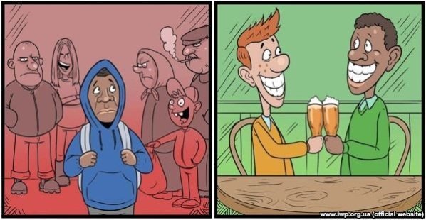 Нетолерантність. В Україні досить часто спостерігаються вияви нетолерантності. Соціологічні дані (КМІС, 2011) показують, що тільки 5% українців готові взяти участь в акціях протесту проти дискримінації. Тільки 36 % українців готові віддати свій голос за єврея як кандидата у президенти, за темношкірого - лише 18%.