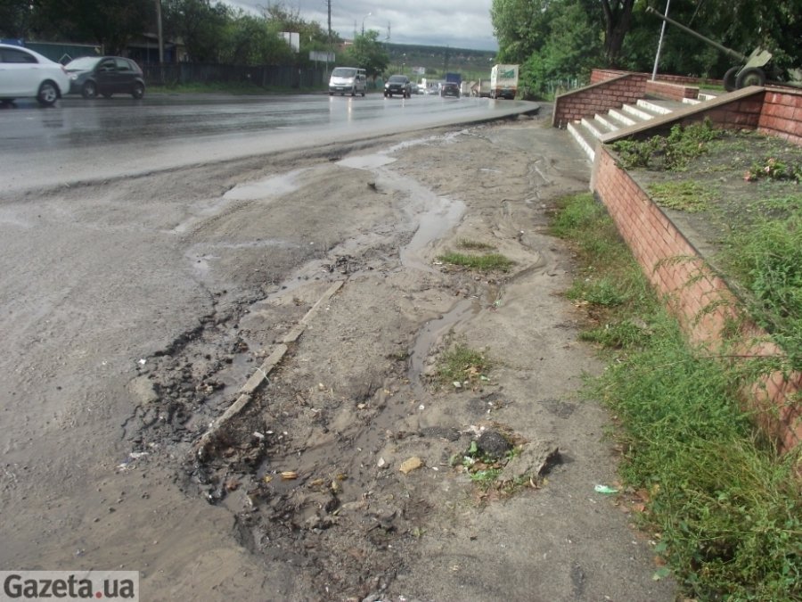 За поганої погоди ця так звана пішохідна частина перетворюється на брудний потік, тому людям доводиться іти проїжджою частиною, по якій з великою швидкістю несуться легковики та вантажні фури.