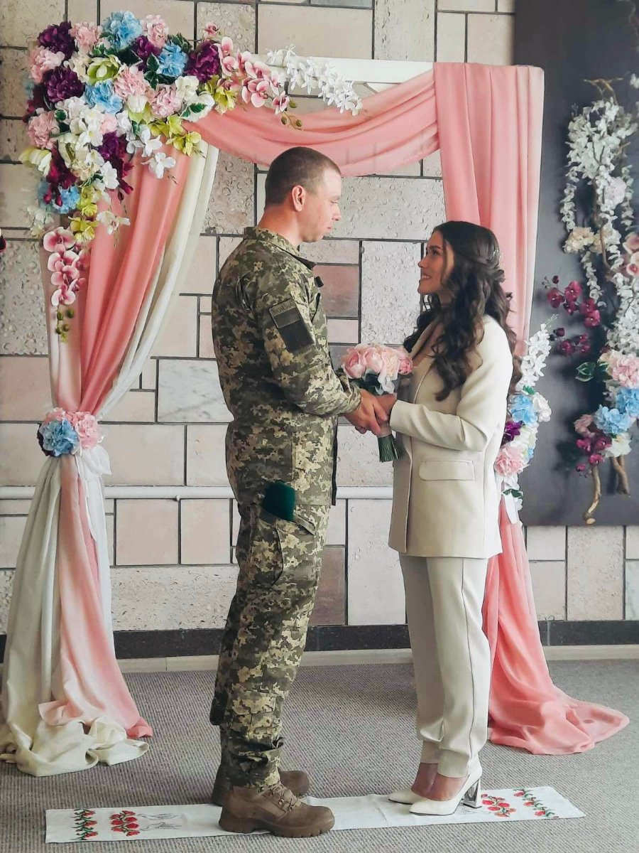 "Особливо зворушливі шлюби військовослужбовців, які одразу після обміну обіцянками йдуть далі захищати нашу Україну. Щиро вітаємо наречених Михайла та Богдану з днем одруження", - йдеться у повідомленні.