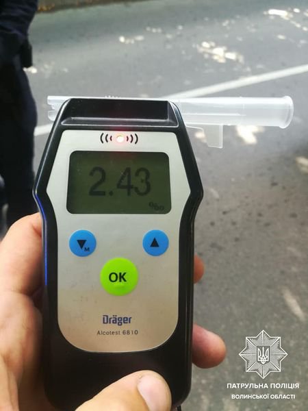 Кермувальник пройшов огляд на визначення стану алкогольного сп'яніння на місці події. Результат – 2,43 проміле, що в 12 разів перевищує допустиму норму.