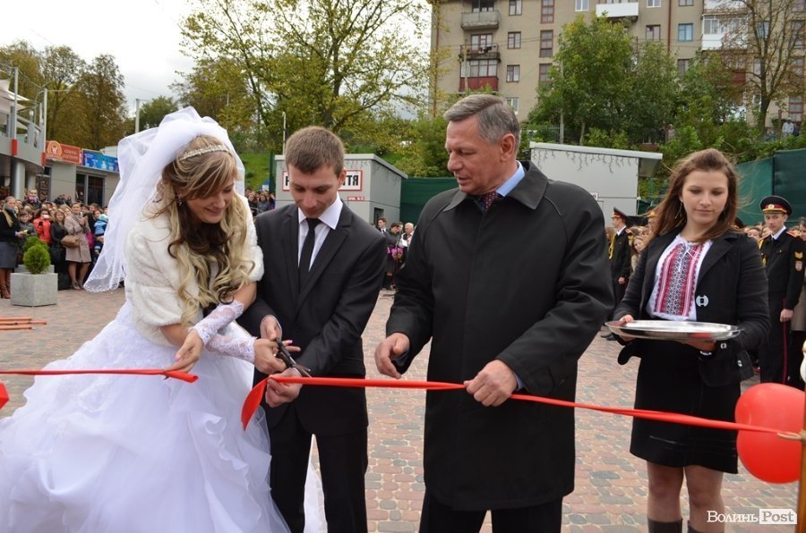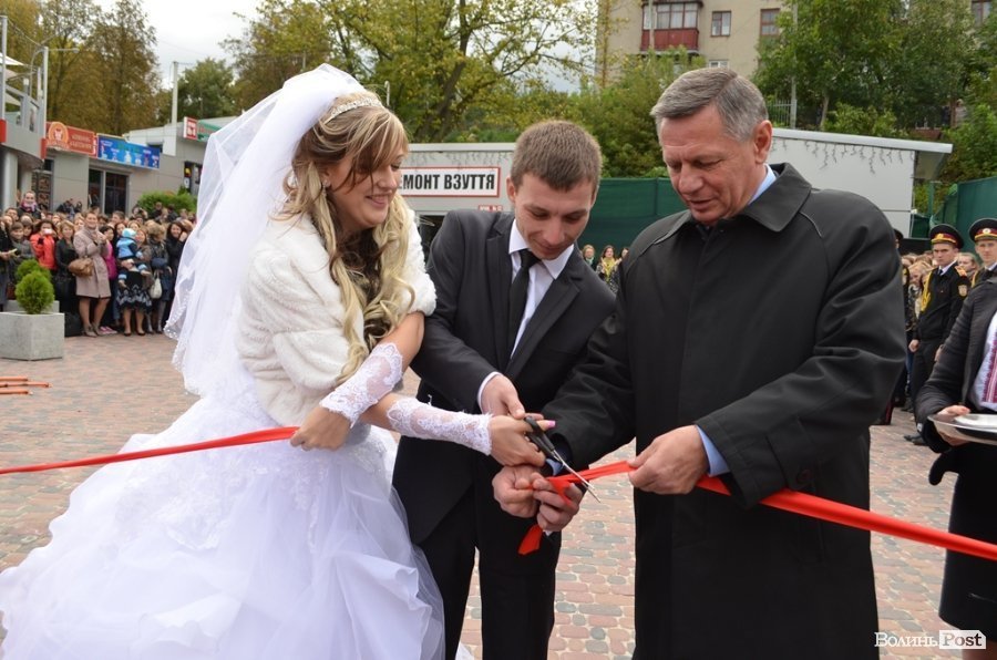 Опісля вітальних слів дві пари молодят, які також завітали на дійство, перерізали червону стрічку, у чому їм допомогли й міський голова та представниця інвестора.