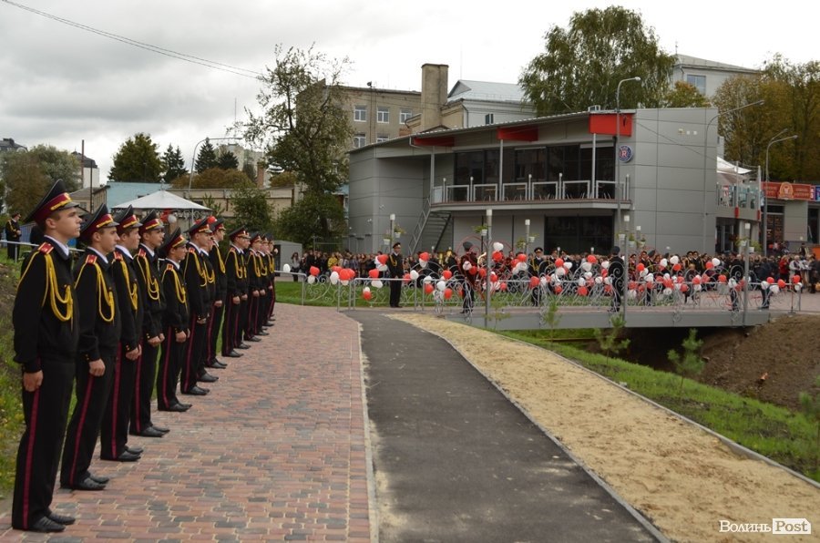 Нагадаємо, відкриття мосту стало одним з етапів проекту будівництва торгового комплексу «Сіті-парк», де передбачили облаштувати ще роледром, велосипедні доріжки та скейтпарк. Крім усього іншого, облаштування «Сіті-парку» дозволило лучанам комфортно переходити через річку Сапалаївка та прирічкову територію, зокрема мешканцям вулиці Ніла Хасевича - до проспекту Волі.
