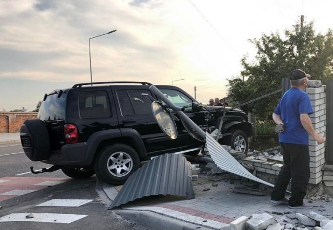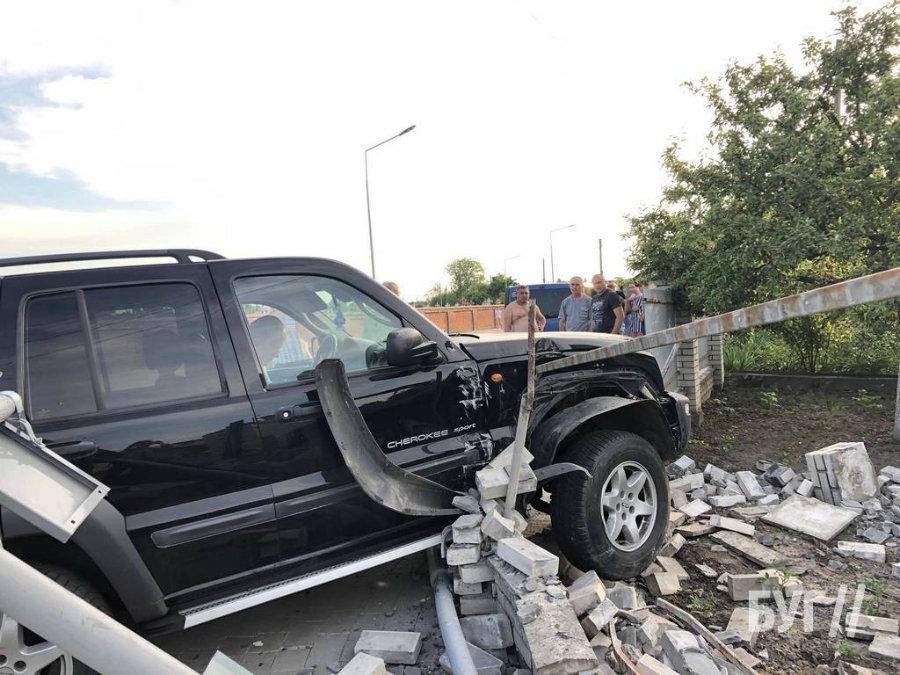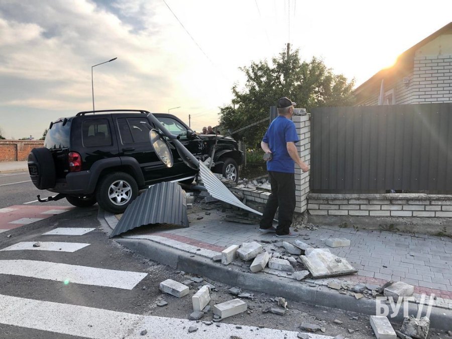 Аварія сталася 7-го червня на вулиці Незалежності у Володимирі. Автомобіль Черокі Спорт розвалив паркан і зніс дорожній знак.