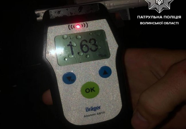 Водій пройшов огляд на визначення стану сп'яніння на місці події. Результат — 1.63 проміле, що в 8 разів перевищує допустиму норму.