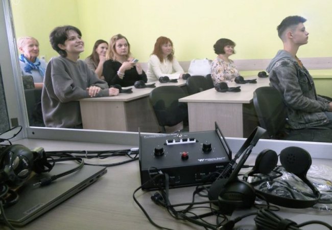 "До цієї лабораторії входять 100 передавачів, які уможливлюють здійснення синхронного перекладу не лише в певному місці, залі, але й це є можливим на певній відстані в межах цього корпусу", – говорить освітянка.