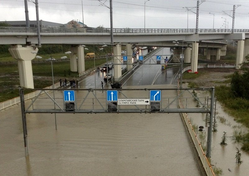 Через негоду в аеропорту Сочі затримали вильоти п’яти рейсів. «Судячи з надісланих до редакції фото, 50-ти мільярдів доларів, витрачених на підготовку Сочі до Олімпіади, виявилося замало. Можливо, саме тому олімпійські розв’язки, не підготовлені до осіннього дощу й просто підтоплені, паралізували рух у всіх напрямках, у тому числі і до Олімпійського парку», – пише видання.
