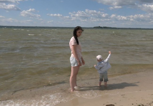 Волинянка Софія Марчук відпочиває на озері разом із дворічним сином. Жінка каже: не здивувалася, коли побачила Світязь напівпорожнім. "З війною то не те, що було раніше, зараз люди не їдуть так відпочивати", – говорить туристка.